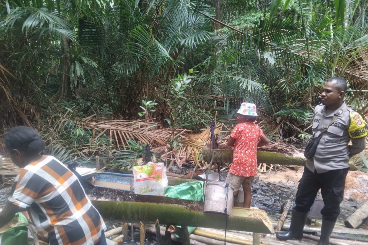 Kegiatan sambang tersebut dilakukan dengan mengunjungi masyarakat yang sedang melaksanakan kegiatan tokok saguh, yaitu proses pengolahan sagu secara tradisional yang menjadi salah satu sumber pangan utama masyarakat setempat. Dalam kegiatan tersebut, Bhabinkamtibmas berinteraksi langsung dengan masyarakat sekaligus memantau situasi keamanan di lingkungan kampung binaan.