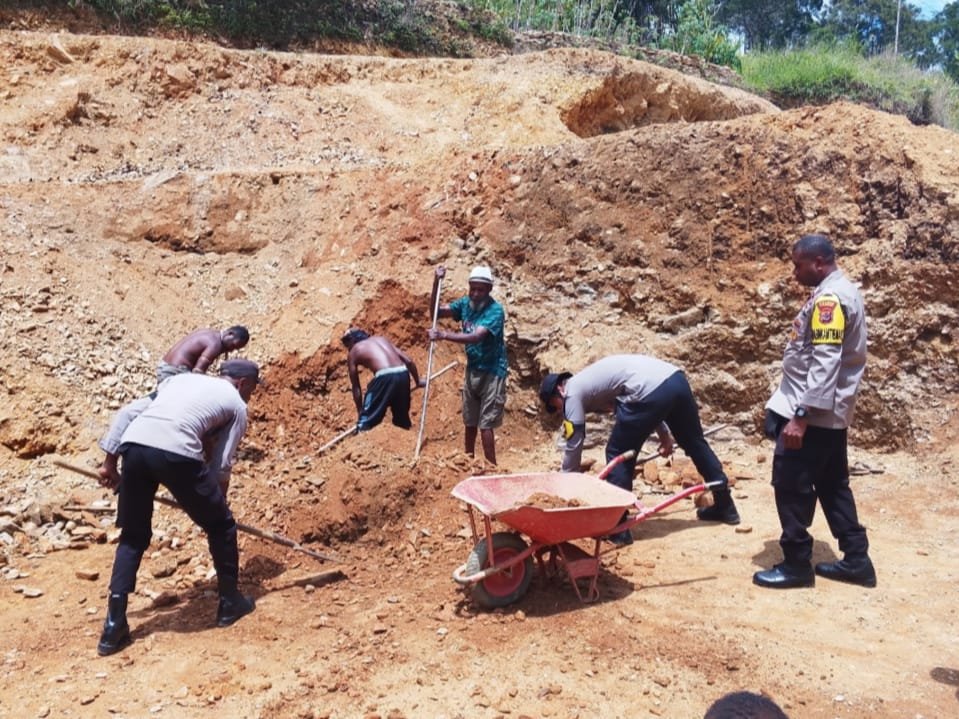 Papua – Dalam rangka mempererat tali silaturahmi dan kemitraan dengan masyarakat, Kanit Bhabinkamtibmas bersama personel Bhabinkamtibmas Polres Tolikara hadir dan ikut bergotong royong bersama warga di kediaman Kepala Suku Karubaga, Bapak Kitanggen Yikwa, Desa Nanggulurik, Selasa (23/09/2025).