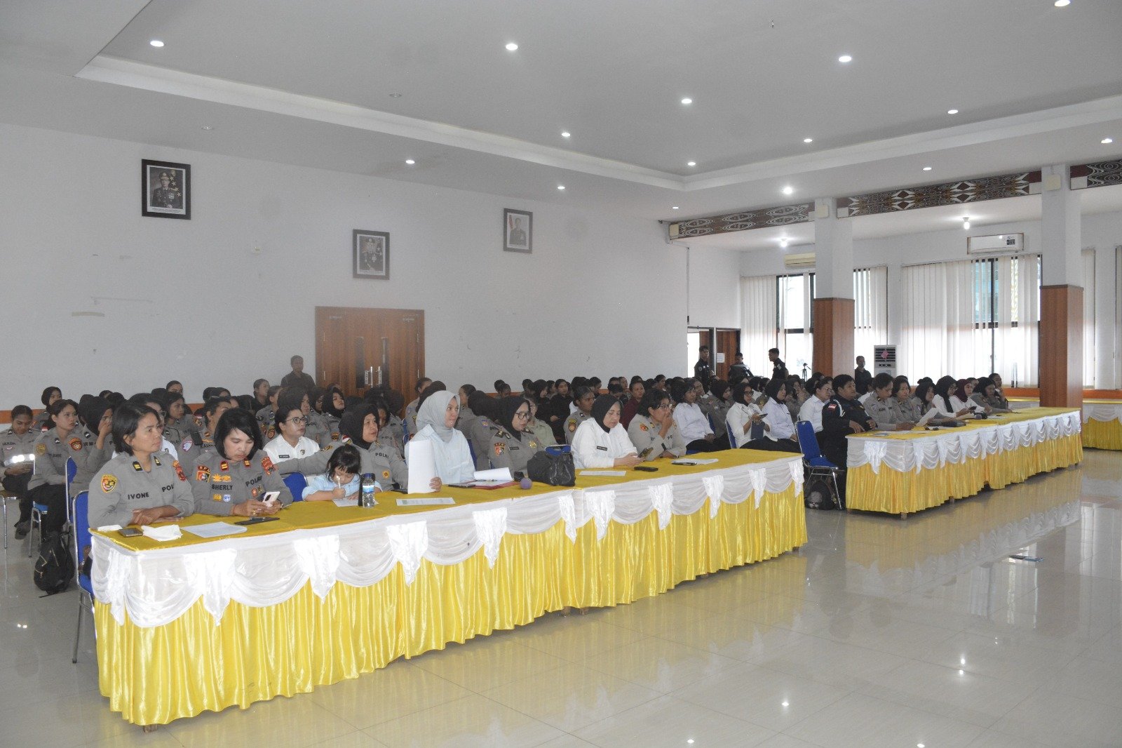 Hadir dalam kegiatan tersebut Pakor Polwan Polda Papua Kompol Dorthea M. Ansanai, S.Pd, Kasubbid PID Bid Humas Polda Papua Kompol Nurjanah, S.Sos., M.M, Kasubbag Renmin SPN Polda Papua Kompol Deti Irawati, S.Sos, serta para perwira dan bintara Polwan Polda Papua.
