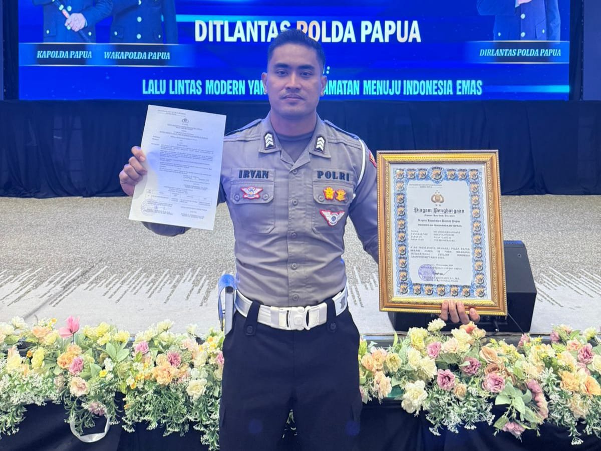 “Rasa syukur saya haturkan kepada Tuhan Yang Maha Esa, Institusi Polri, Kapolda Papua, Kapolres Merauke, Kasat Lantas Polres Merauke, rekan-rekan anggota, keluarga, pelatih, serta semua pihak yang telah memberikan dukungan hingga saya bisa meraih prestasi ini,” ucapnya.