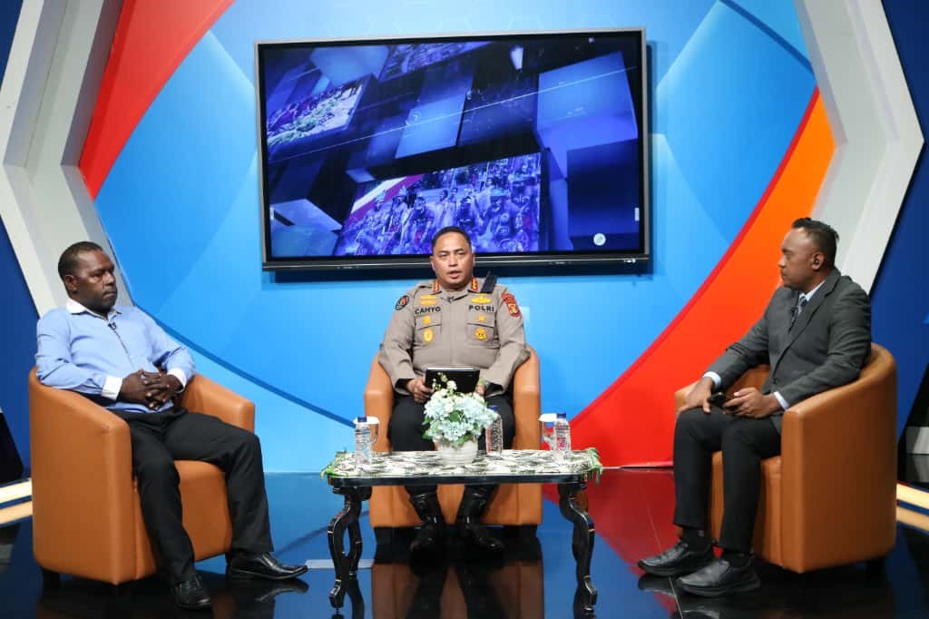 Papua – Kepolisian Daerah Papua melalui Kabid Humas Kombes Pol Cahyo Sukarnito, S.I.K., M.K.P. menjadi narasumber dalam program dialog interaktif Papua 60 Menit yang disiarkan langsung dari Stasiun LPP TVRI Papua, Rabu (22/10/2025).
