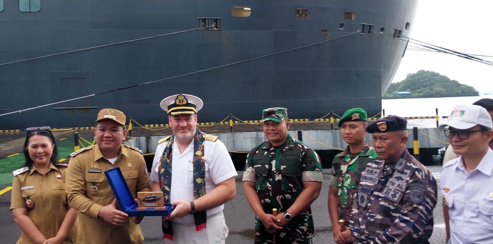 Kegiatan dilanjutkan dengan ucapan terima kasih dari Kapten Kapal Mr. Tomas Connery, Pertukaran Cindera Mata dan Foto bersama.(rd)