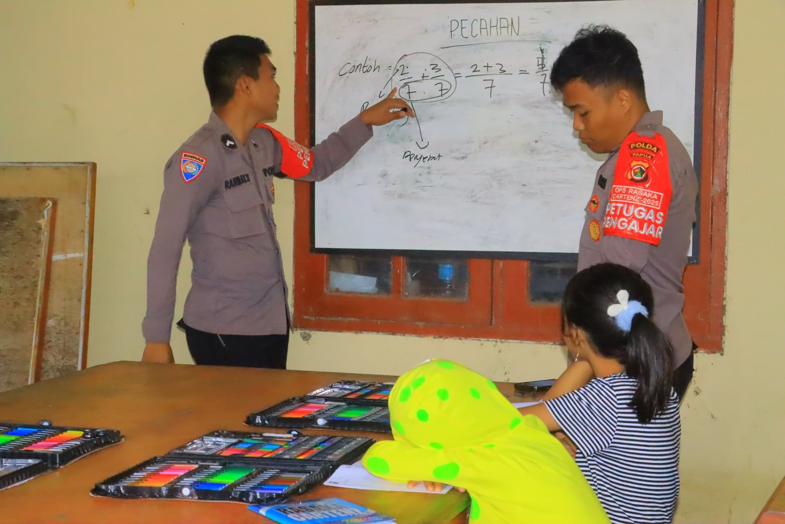 Kegiatan belajar bersama ini dilaksanakan di berbagai kampung, menjadi ruang edukasi sekaligus wadah untuk membangun kedekatan dan kepercayaan antara aparat keamanan dengan masyarakat setempat.