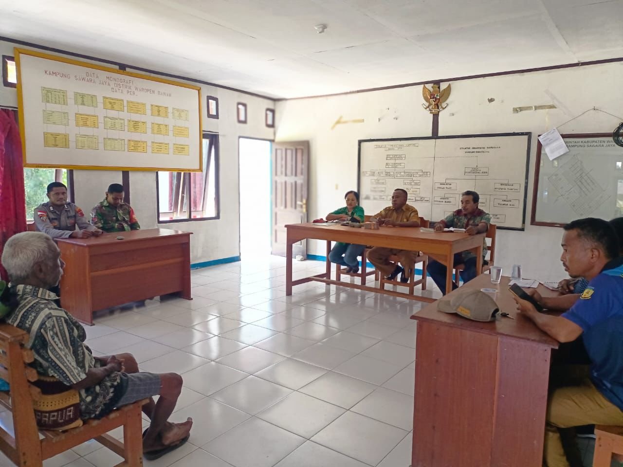 Papua – Dalam rangka mendukung program ketahanan pangan di wilayah binaannya, Bhabinkamtibmas Kampung Sawara Jaya SP VI, Distrik Waropen Bawah, Bripka Otniel Manioni menghadiri rapat pembahasan program ketahanan pangan yang dilaksanakan di Balai Kampung Sawara Jaya SP VI, Selasa (13/1/2026).