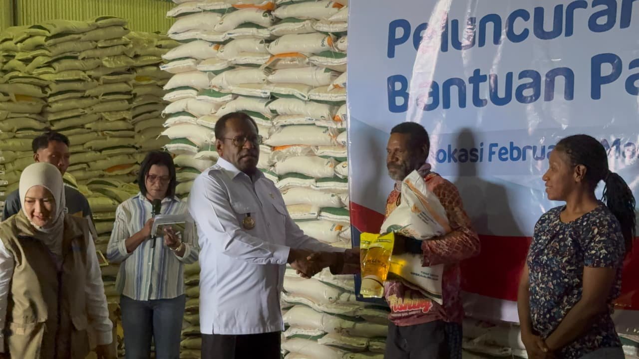 Dalam sambutannya, Pimpinan Cabang Perum Bulog Merauke, Kerenmu, S.E., menyampaikan apresiasi kepada seluruh pihak yang telah mendukung percepatan pelaksanaan program bantuan pangan tersebut.