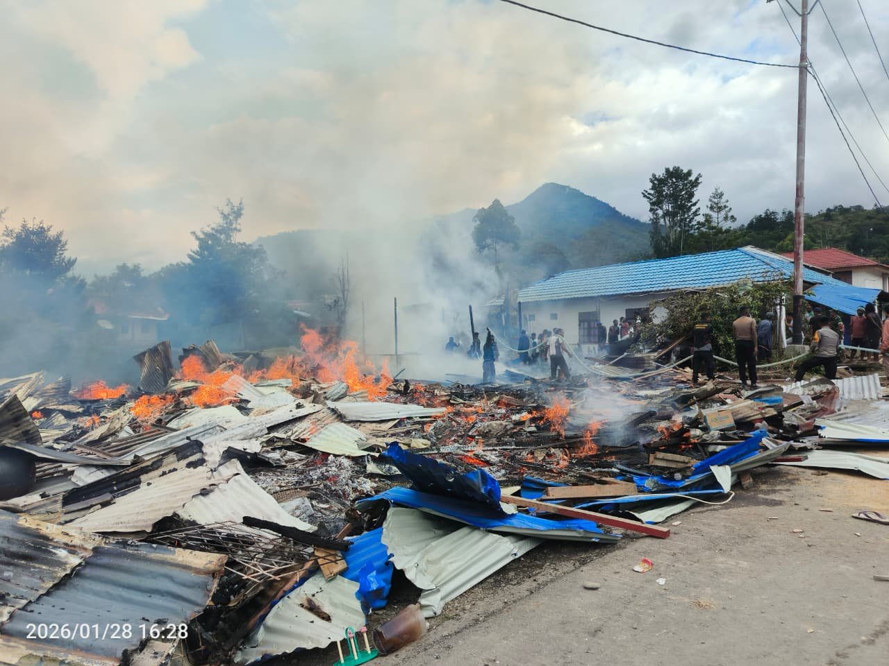 Papua – Kepolisian Daerah Papua membenarkan terjadinya kebakaran hebat yang melanda wilayah Giling Batu hingga pertengahan Kogome, Kota Karubaga, Kabupaten Tolikara, Rabu (28/1/2026).