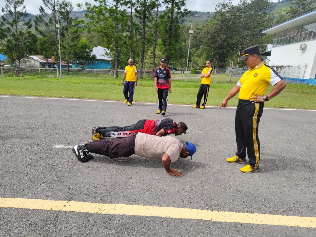 Menjaga Kebugaran Tubuh, Personel Polsek Bokondini Gelar Olahraga Bersama di Landasan Bandara