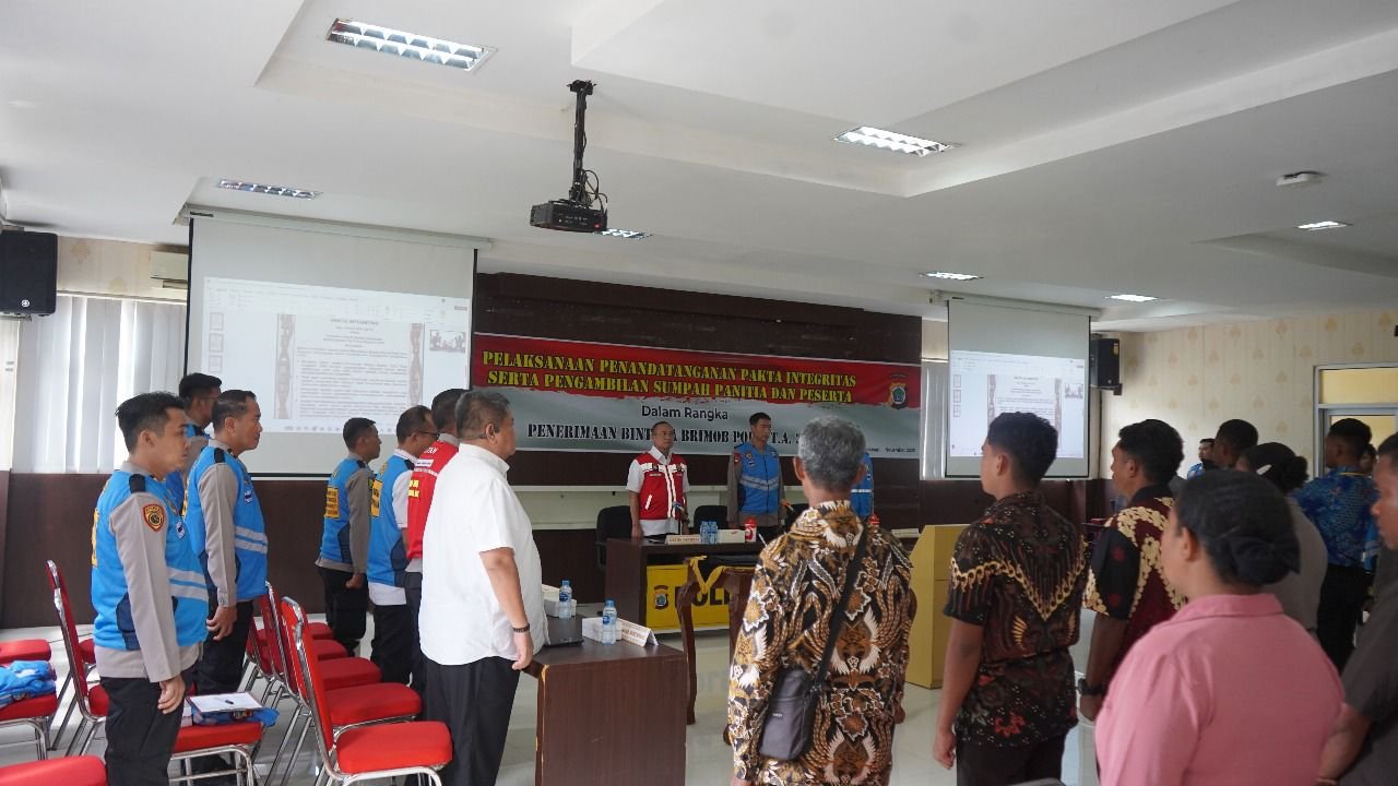 Acara dimulai dengan pembacaan sumpah yang dipimpin oleh Wakapolda Papua Barat dan diikuti oleh seluruh panitia serta peserta. Penandatanganan pakta integritas dan pengambilan sumpah ini merupakan bentuk komitmen kuat untuk menyelenggarakan proses seleksi secara bersih, transparan, dan akuntabel,
