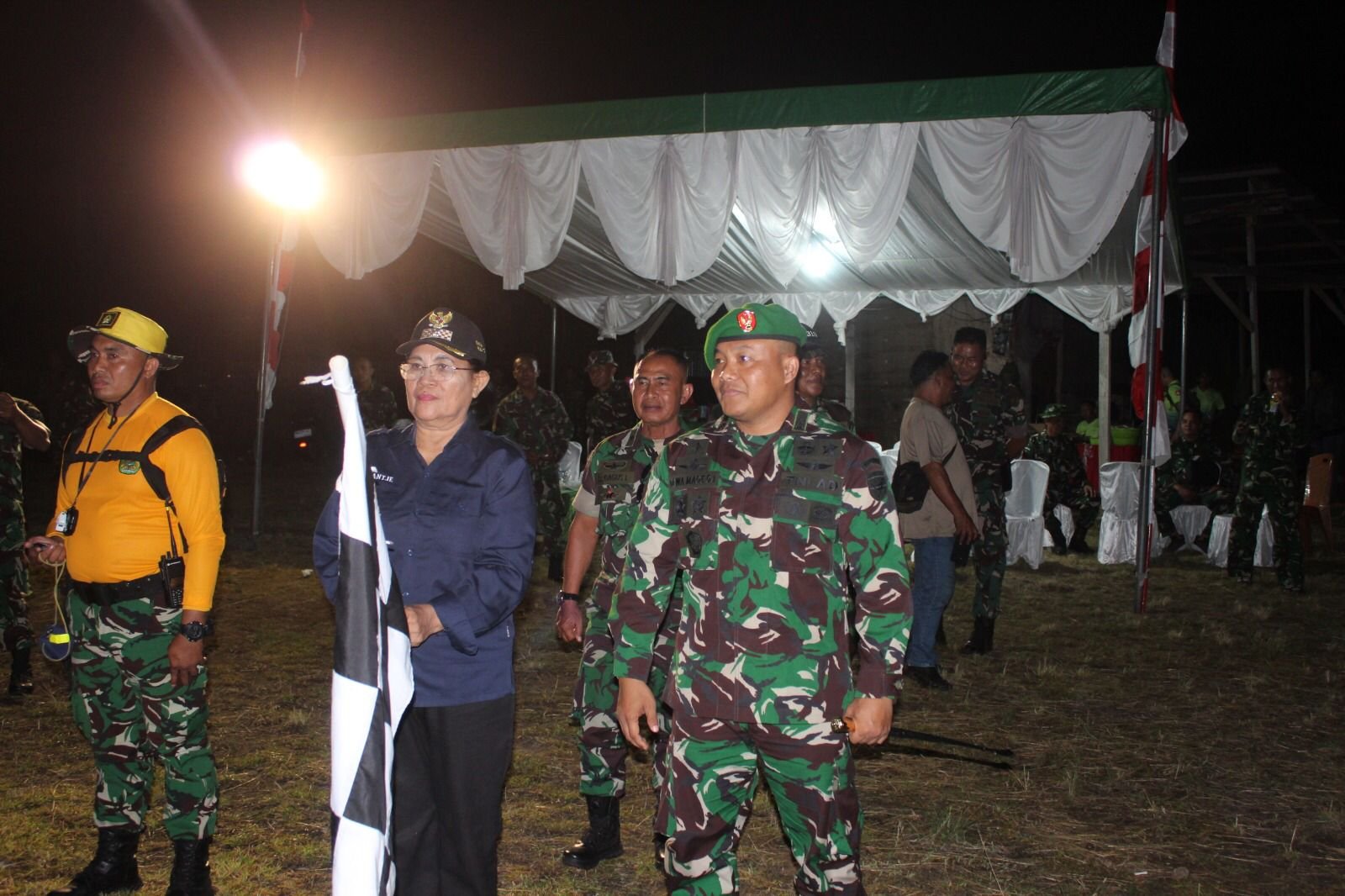 Usai pelaksanaan upacara serah terima, Pasukan Peleton Beranting Yudha Wastu Pramuka Jaya, Start dari titik Etape II Desa Kema Dua Kec. Kema menuju Cek Point 1 Etape III dilepas oleh Hukum Tua Kema Dua Ibu Ariantje Loho.(rd)