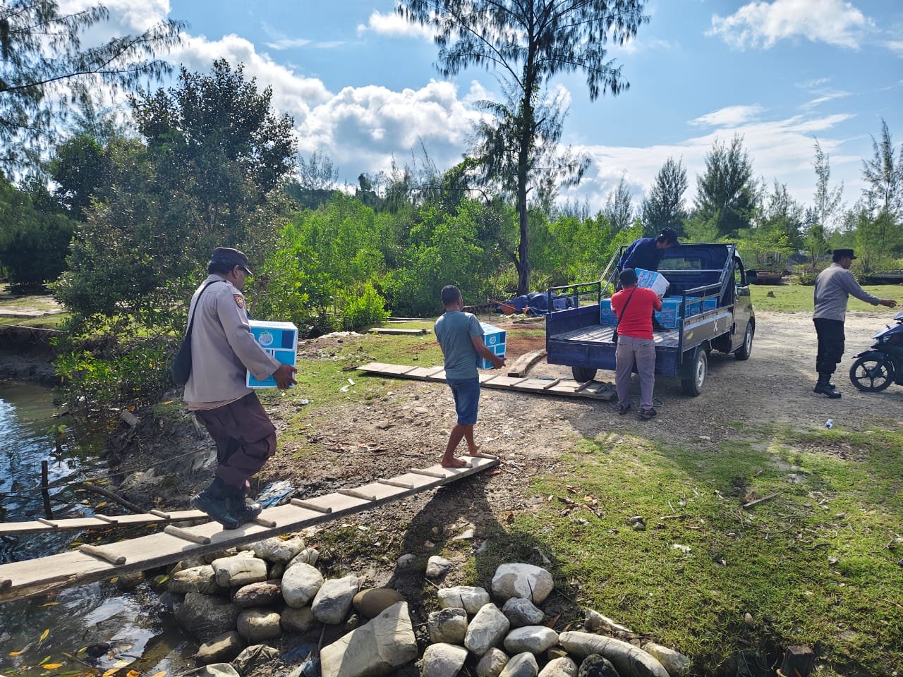 Karas – Personel Polsek Karas, jajaran Polres Fakfak, melaksanakan pengamanan serta dukungan penuh dalam kegiatan pendistribusian dan penyerahan bantuan sosial (bansos) sembako kepada warga korban kebakaran di RT 4 Kampung Malakuli, Distrik Karas, Kabupaten Fakfak, Selasa (28/01/2026).