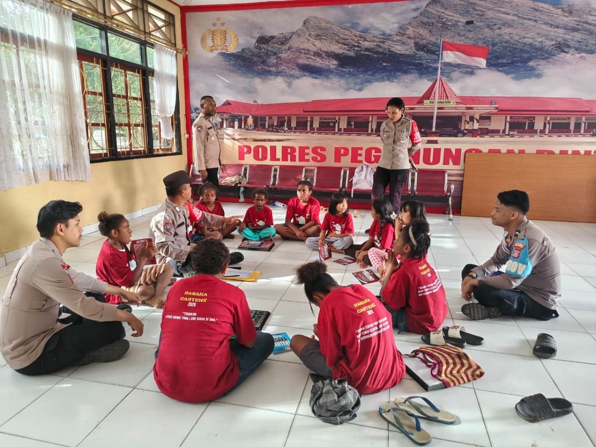 Papua – Program Si-IPAR (Polisi Pi Ajar), bagian dari Operasi Rasaka Cartenz 2025, Mengajar Membaca, Menulis dan Berhitung Kepada Anak-anak Didik, kegiatan dilaksanakan di Mako Polres Pegunungan Bintang, Kabupaten Pegunungan Bintang, Oksibil Sabtu (04/10) Sore.