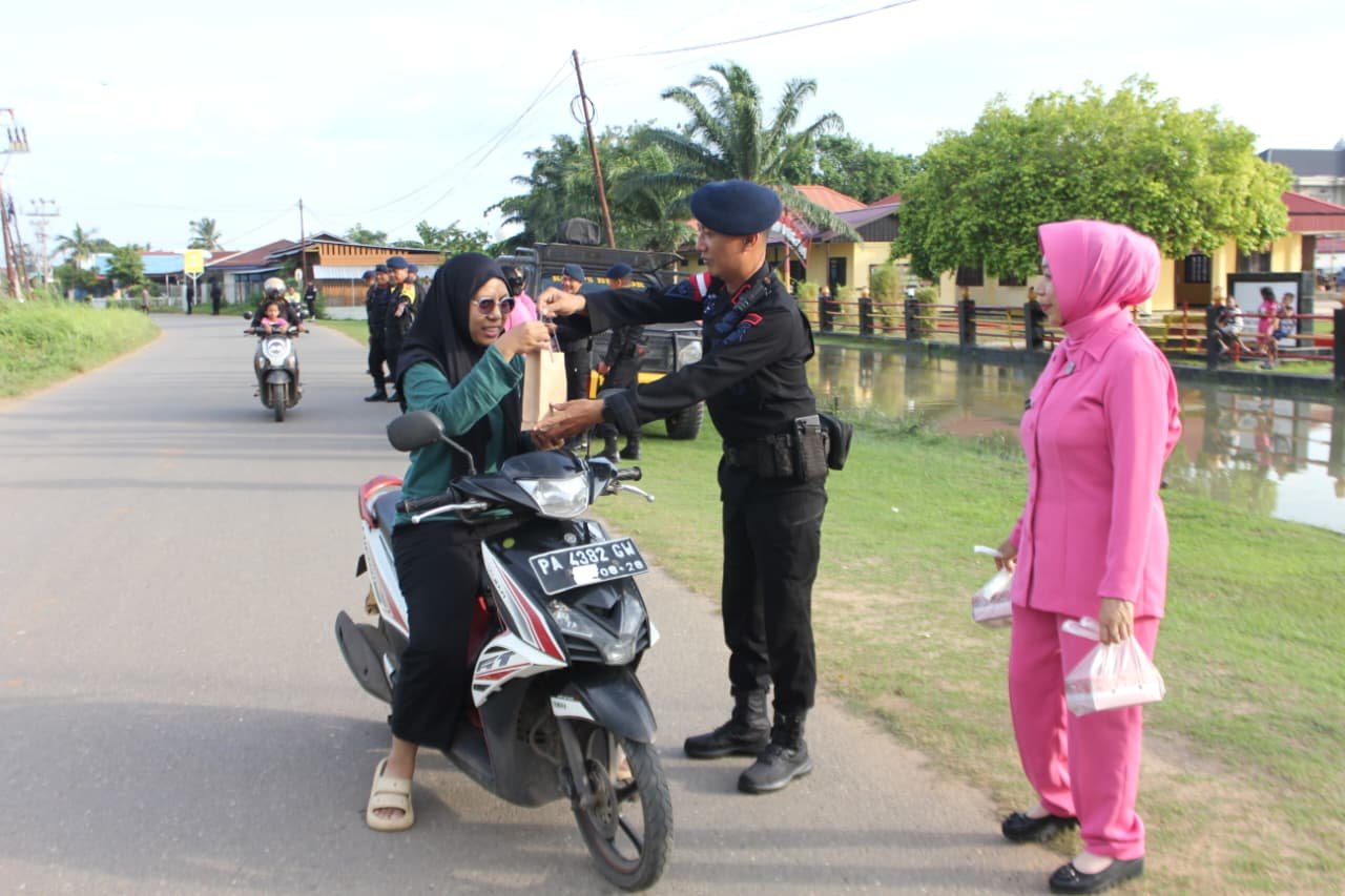 Ratusan paket takjil disiapkan dan dibagikan secara langsung kepada pengendara roda dua, roda empat, maupun pejalan kaki yang melintas di sekitar lokasi kegiatan. Kehadiran personel Brimob dan Bhayangkari dalam kegiatan tersebut disambut antusias oleh masyarakat yang tengah menjalankan ibadah puasa.