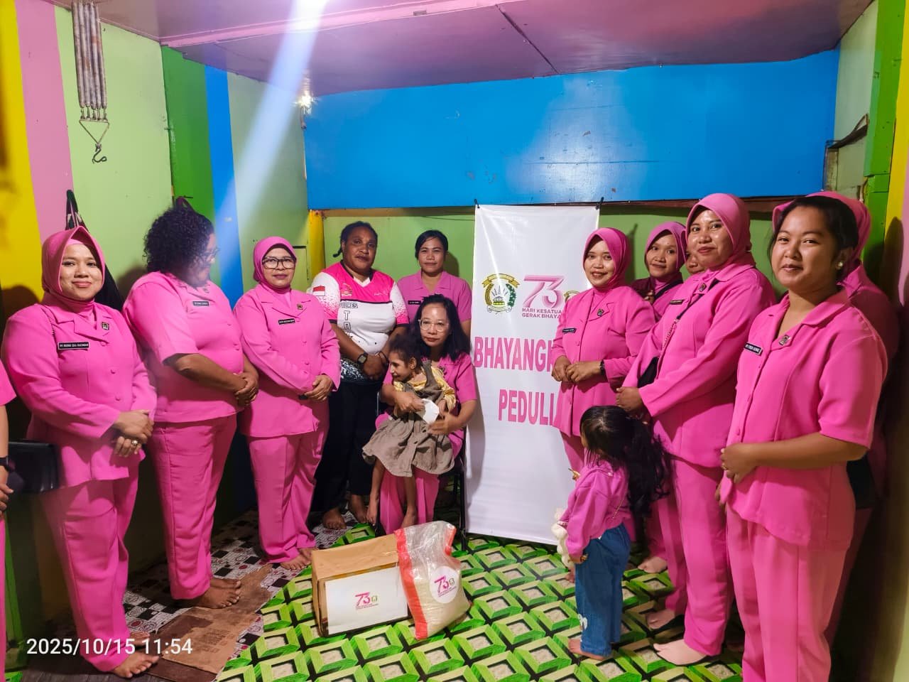 Papua – Dalam rangka menyambut Hari Kesatuan Gerak Bhayangkari (HKGB) ke-73, Ketua Bhayangkari Cabang Tolikara, Ny. Erni Roberth Hitipeuw, bersama pengurus menggelar kegiatan sosial bertajuk “Bhayangkari Peduli” dengan memberikan perhatian khusus kepada anak-anak penyandang disabilitas di wilayah Karubaga, Rabu (15/10/2025).