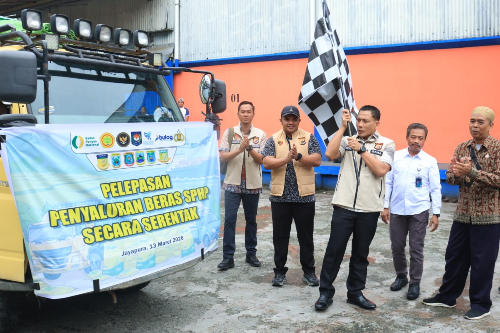 Dalam kegiatan tersebut, Satgas Pangan yang terdiri dari Ditreskrimsus Polda Papua, Perum Bulog, dan Disperindag Provinsi Papua melakukan pelepasan simbolis pendistribusian beras SPHP kepada masyarakat sebagai bagian dari program nasional untuk menjaga stabilitas pasokan dan harga pangan.