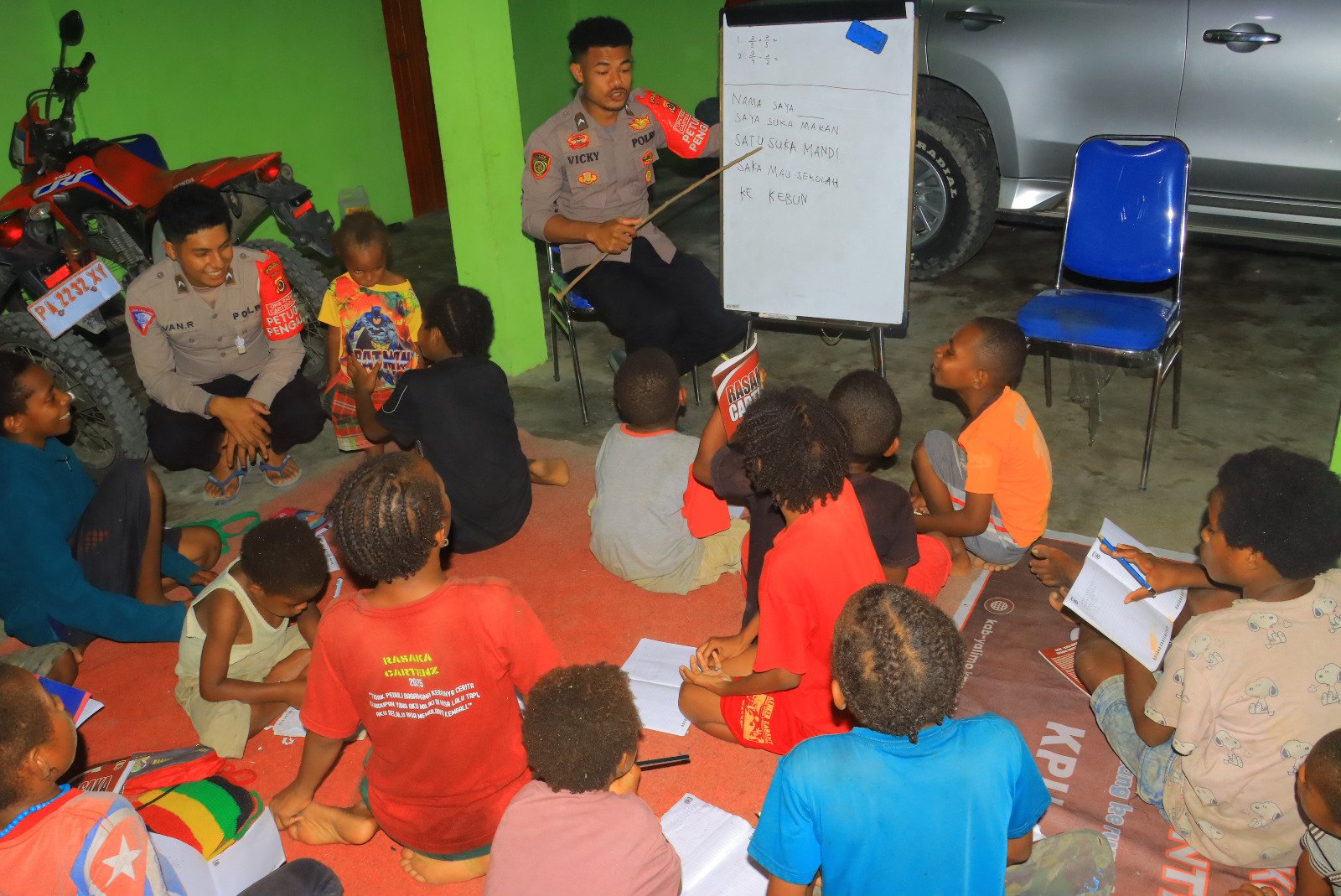 Kelas Ceria ini tidak hanya menjadi wadah belajar, tetapi juga menjadi ruang kebersamaan antara aparat dan masyarakat.