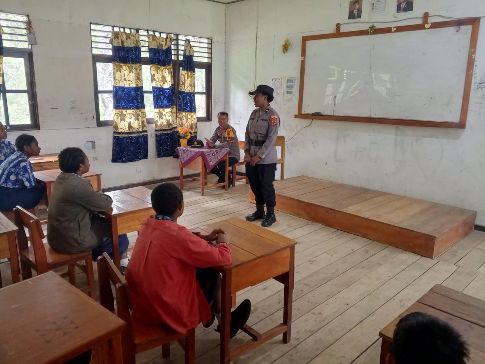Papua — Personel kepolisian melaksanakan kegiatan pembinaan dan penyuluhan kepada para pelajar di SMP Negeri 4 Kampung Yogobak, Distrik Nogi, Kabupaten Lanny Jaya, Papua Pegunungan. Kegiatan tersebut merupakan bagian dari program pembinaan masyarakat dalam rangka Operasi Rasaka Cartenz 2026.