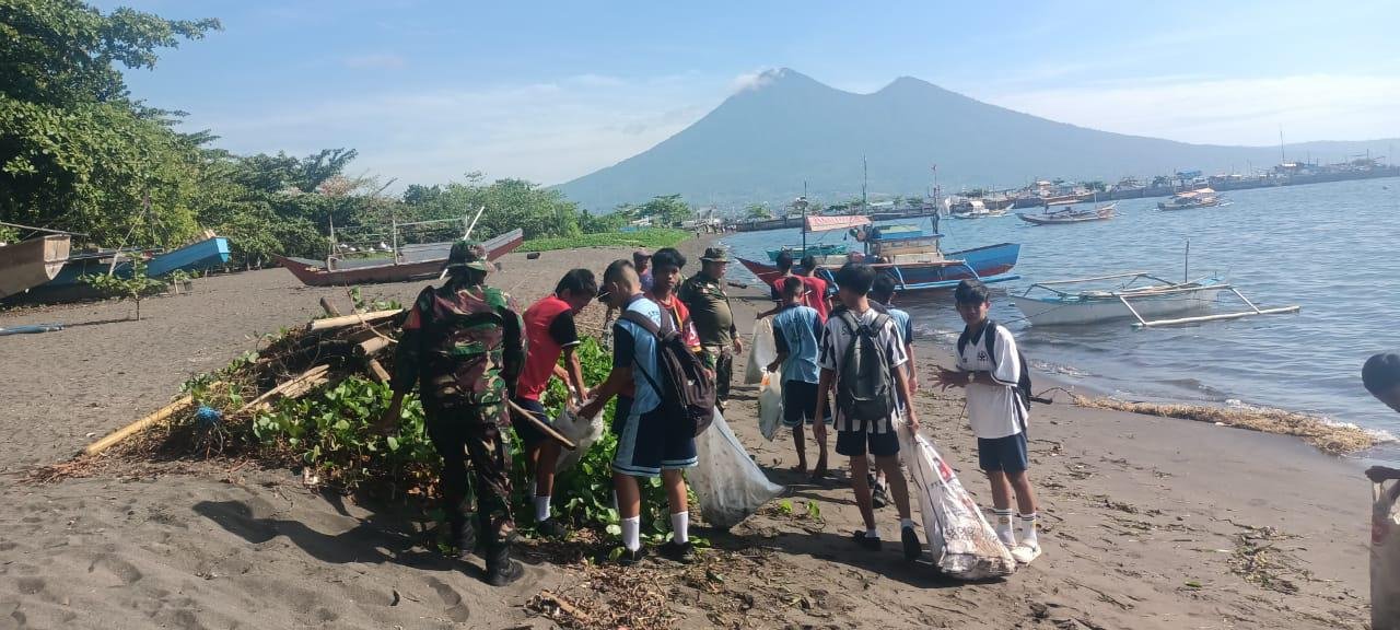 Bitung – Dalam rangka mendukung program Gerakan Indonesia Asri, Personel Koramil 1310-01/Bitung jajaran Kodim 1310/Bitung melaksanakan kegiatan karya bakti dengan sasaran pembersihan pesisir pantai wisata Waleleng dan penanaman pohon Bitung, bertempat di Kelurahan Tanjung Merah, Kecamatan Matuari, Kota Bitung, Rabu (04/03/2026).