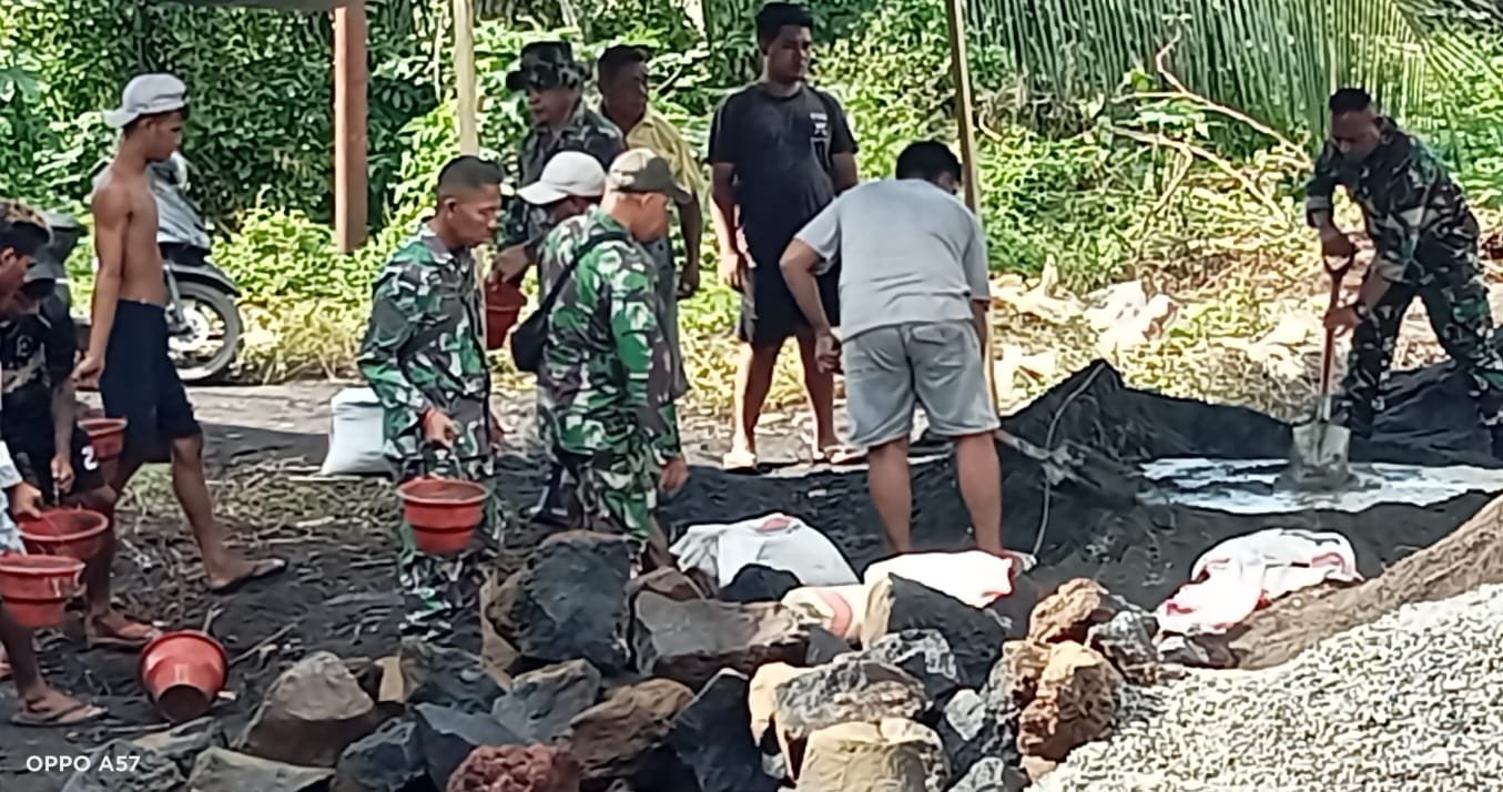 Bitung – Semangat gotong-royong terus ditunjukkan oleh aparat TNI dari Koramil 1310-01/Bitung Kodim 1310/Bitung, bersama masyarakat dan para pekerja dalam pembangunan jembatan beton di Kelurahan Girian Indah Kec. Girian Kota Bitung, Selasa (14/04/2026).