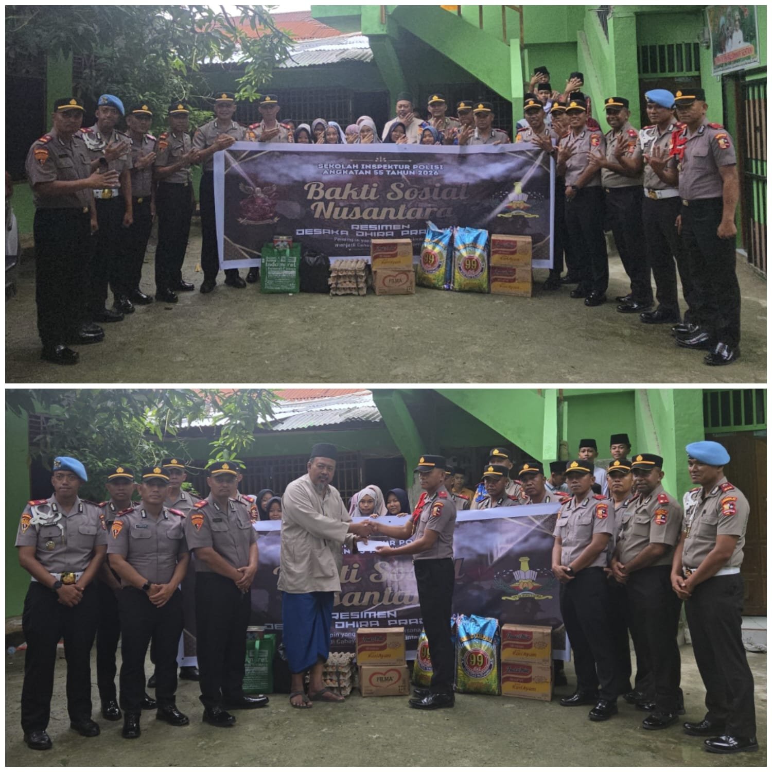Papua, 18 Maret 2026 — Siswa Sekolah Inspektur Polisi (SIP) Angkatan 55 Tahun Anggaran 2026 Resimen Desaka Dhira Pradhipa asal pengiriman Polda Papua melaksanakan kegiatan bakti sosial di Pondok Pesantren Nurul Anwar, Kampung Komba, Distrik Sentani, Kabupaten Jayapura, Provinsi Papua, Rabu (18/3/2026).