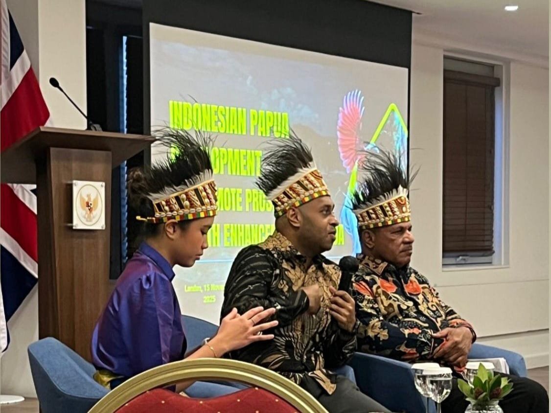 London – Ketua Melanesian Youth Diplomacy Forum, Steve Mara, menjadi narasumber dalam kegiatan Diplomacy For Development yang digelar di Kedutaan Besar Republik Indonesia (KBRI) London, Sabtu (15/11/2025). Acara yang diinisiasi Direktorat Strategi Pertahanan Kementerian Pertahanan itu mengangkat tema “Development to Promote Prosperous Growth Enhancement in Papua Indonesia” atau pembangunan yang mendorong kesejahteraan di Papua.