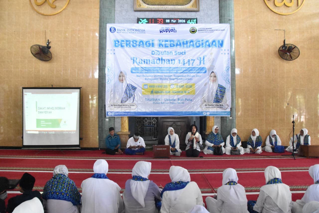 Kegiatan tersebut dihadiri oleh Wakapolda Papua Barat Brigjen Pol. Dr. Sulastiana, M.Si., GRGP., CHCM., CRPP., Perwakilan Bank Indonesia Papua Barat, Ketua Baznas Papua Barat, Ketua PW BKMT Papua Barat, para Ketua PC BKMT, serta para tamu undangan lainnya.