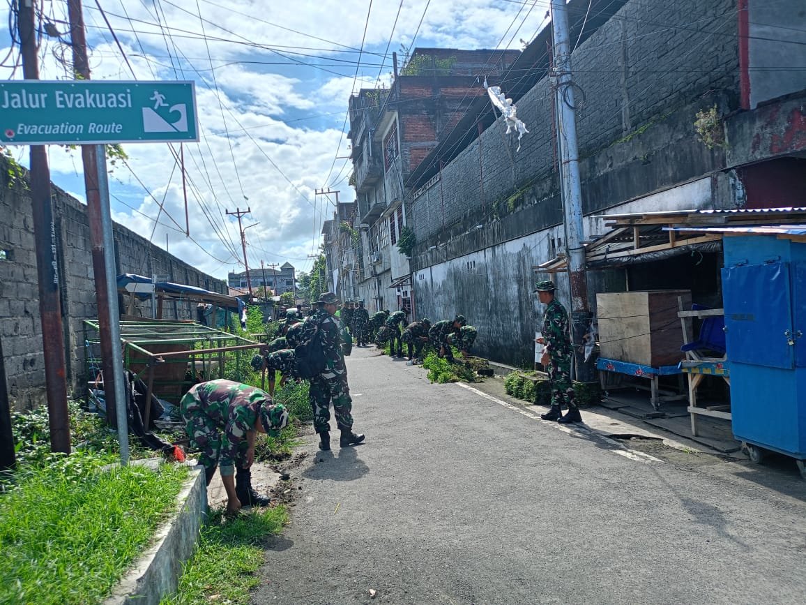 Bitung – Dalam rangka mendukung Gerakan Indonesia Asri, Personel Kodim 1310/Bitung dan Yonif TP 916/Bara Sakti Kodam XIII/Merdeka bersama masyarakat, melaksanakan kegiatan Karya Bakti pembersihan lingkungan bertempat di Kompleks Kanopi, Kelurahan Bitung Timur, Kecamatan Maesa, Kota Bitung, Rabu (18/03/2026).