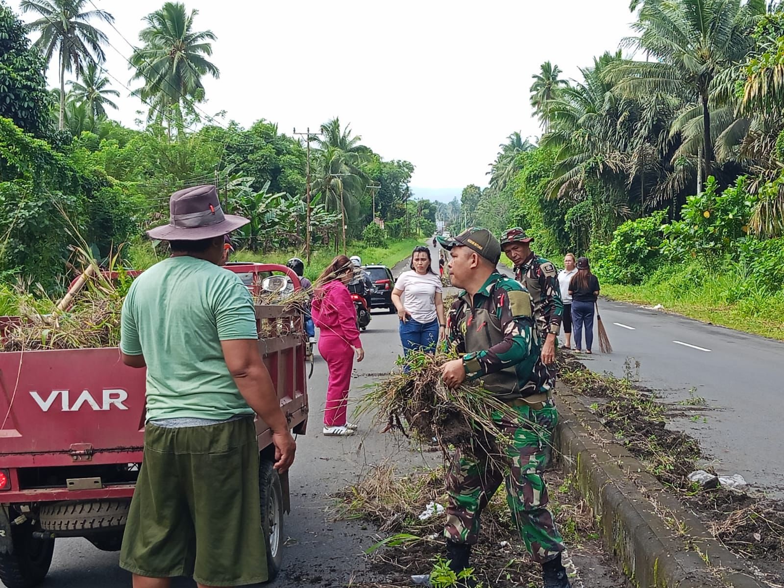 Danramil 1310-04/Dimembe Kapten Czi Roby Wicaksono, S.T.Han., M.H.I., menyampaikan, kegiatan tersebut merupakan bentuk kepedulian TNI terhadap kebersihan lingkungan dan upaya membantu pemerintah dalam memperlancar akses transportasi masyarakat.